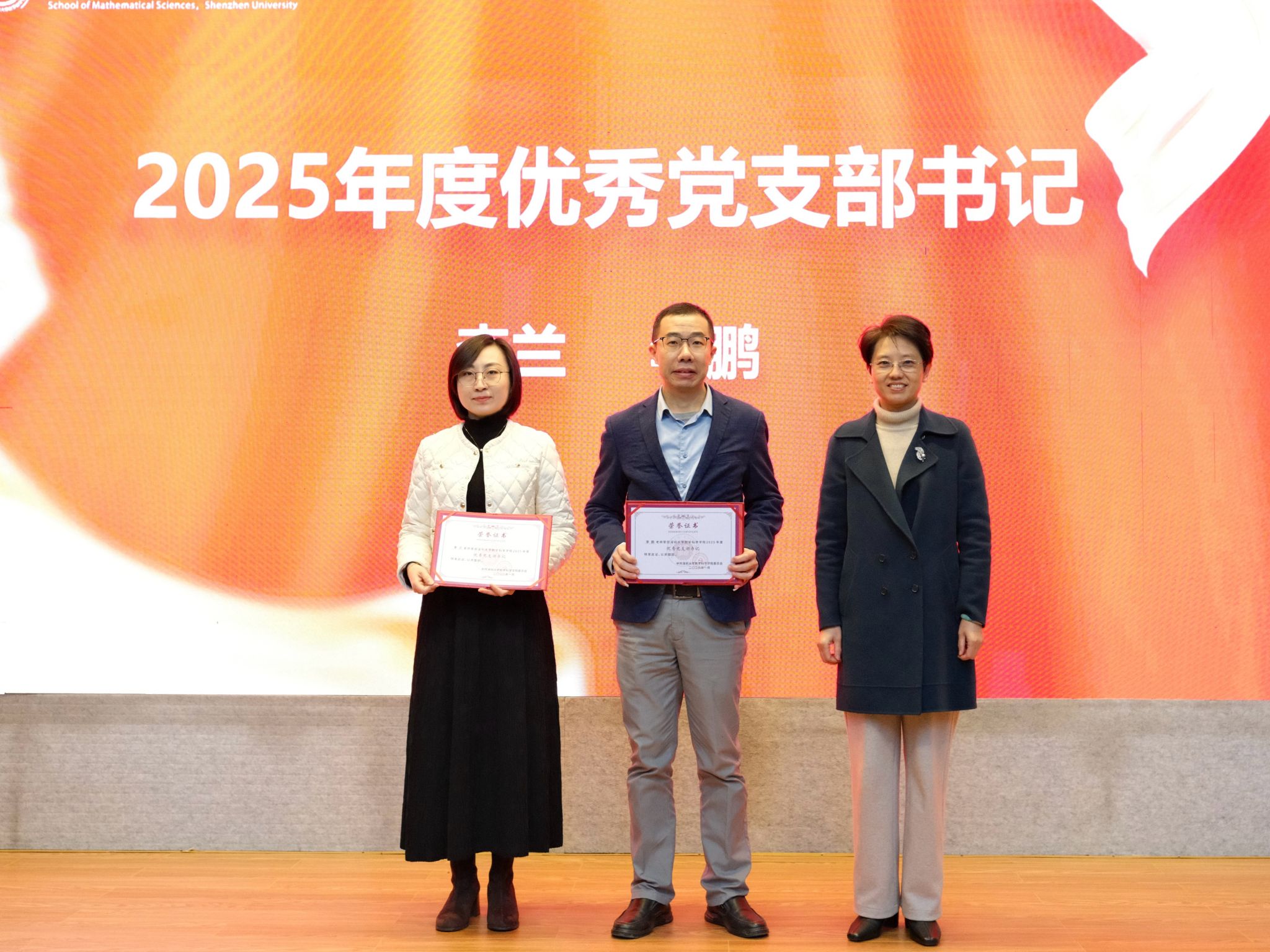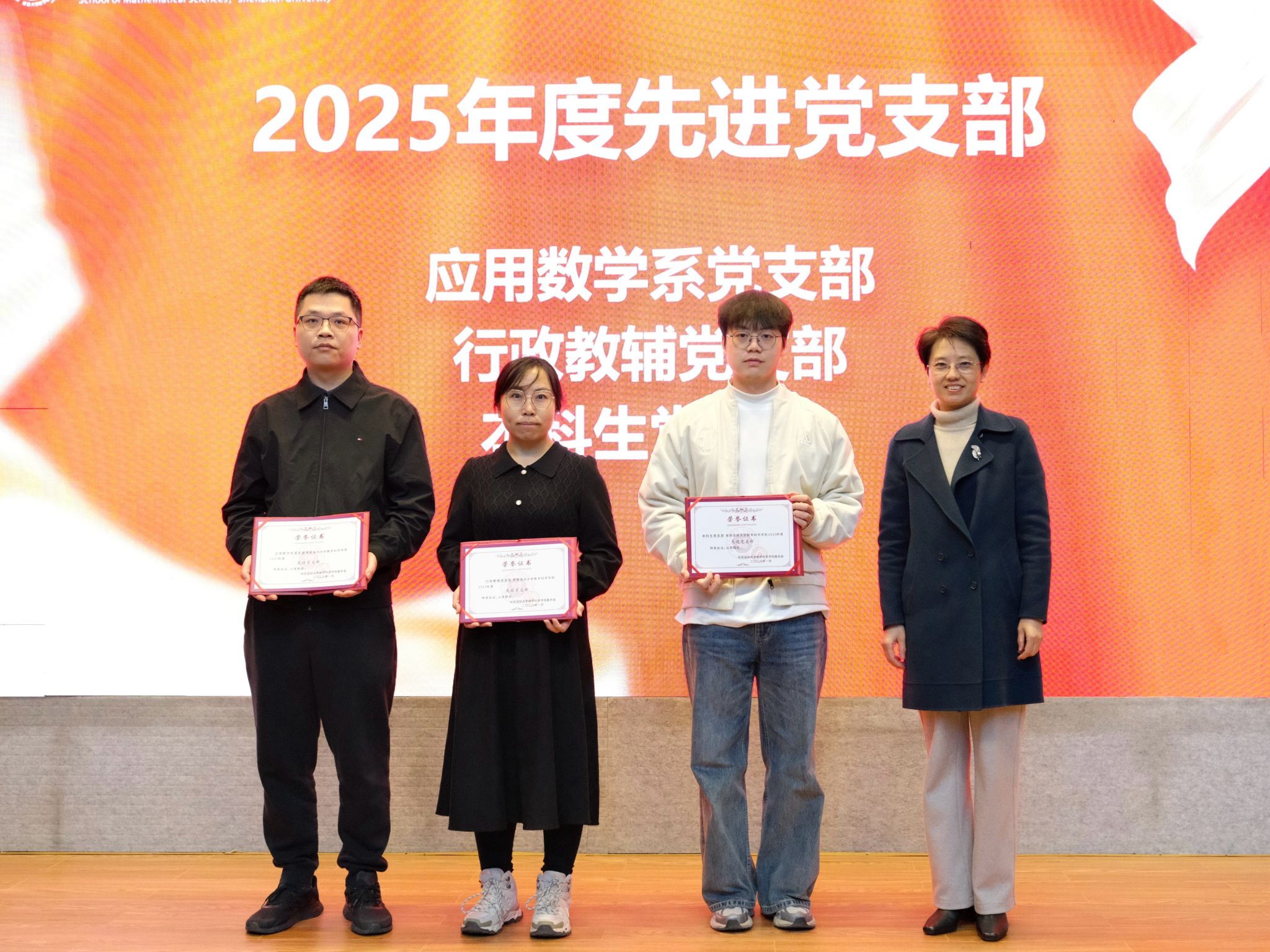 在颁奖环节,院党委书记王瑜,副院长鲁坚、韩雨、胡耀华分别为获奖的先进集体与优秀个人颁发证书。